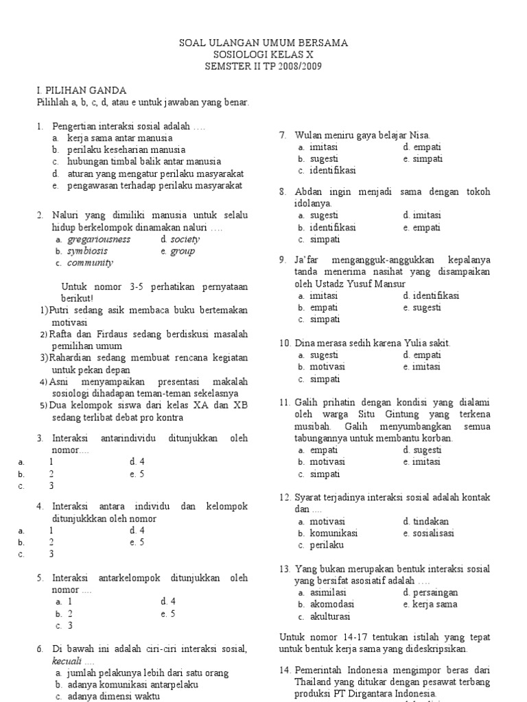SOAL - INTERAKSI SOSIAL