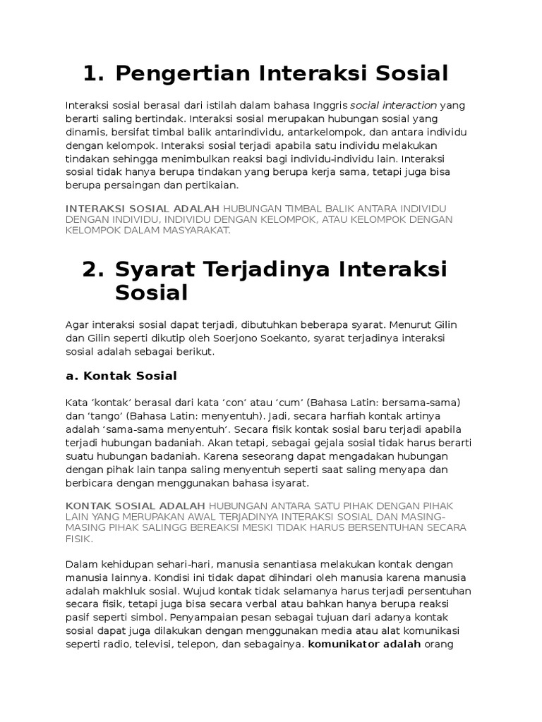 1. Jelaskan pengertian interaksi sosial ?2. Jelaskan syarat-syarat …