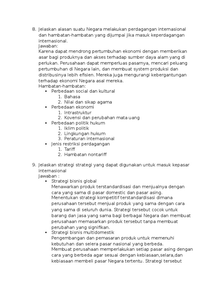 9. Alasan utama tiap negara melakukan perdagangan internasional adalah….A. menciptakan - Brainly.co.id