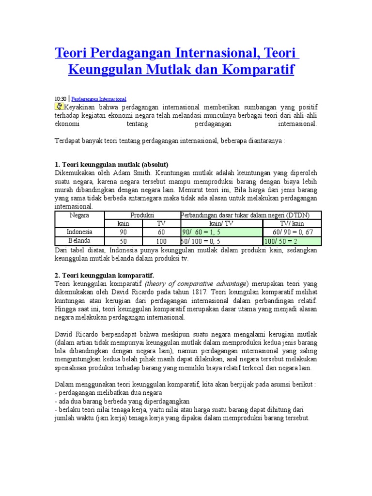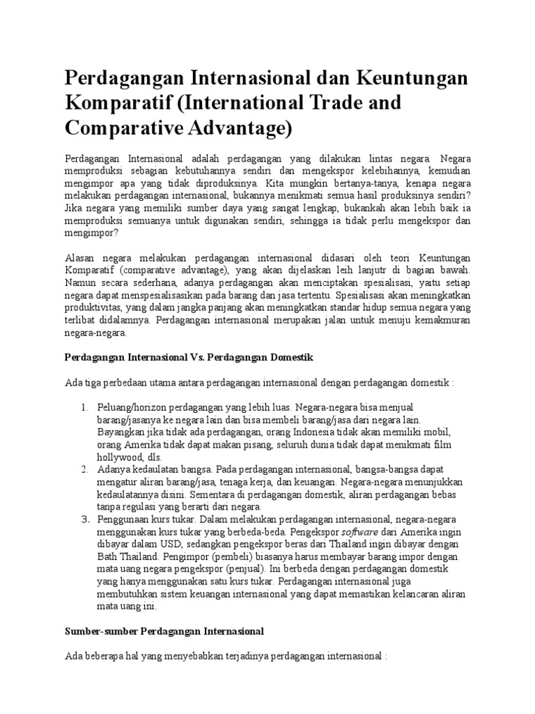 Perdagangan Internasional Dan Keuntungan Komparatif