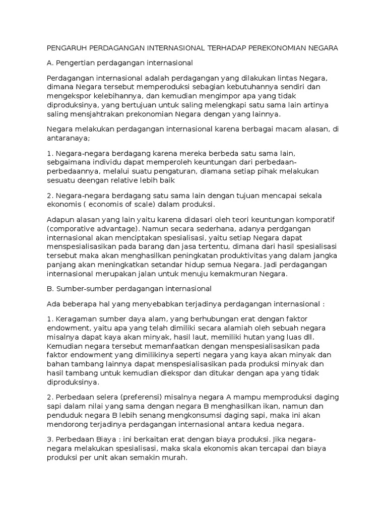 Alasan mendasar suatu negara melakukan perdagangan internasional adalah …. A. keterbatasan dalam - Brainly.co.id
