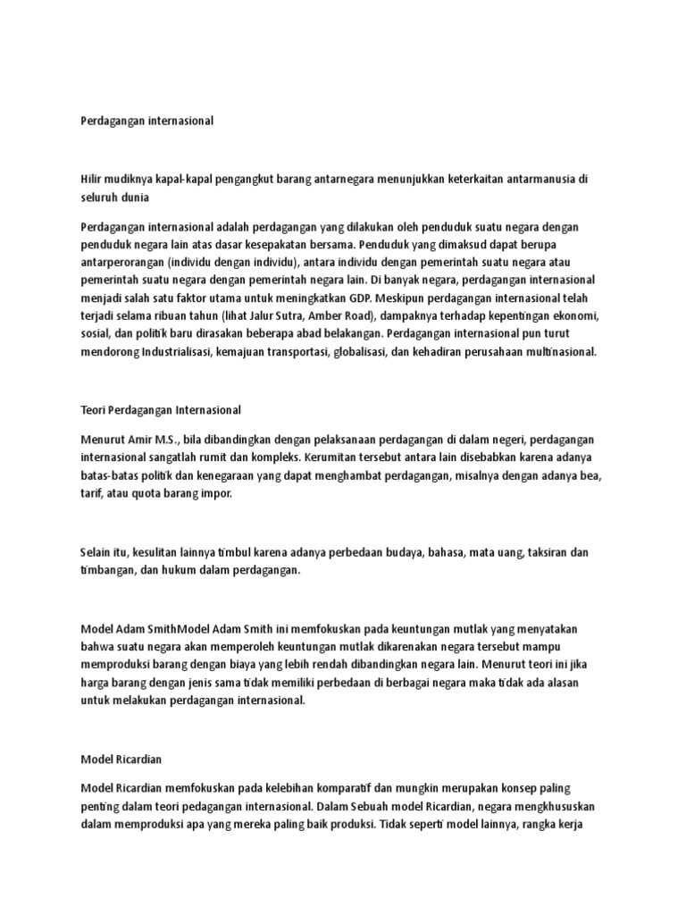 PERDAGANGAN INTERNASIONAL : Pengertian, Manfaat, Teori dan Faktor Pendorong | Salamadian