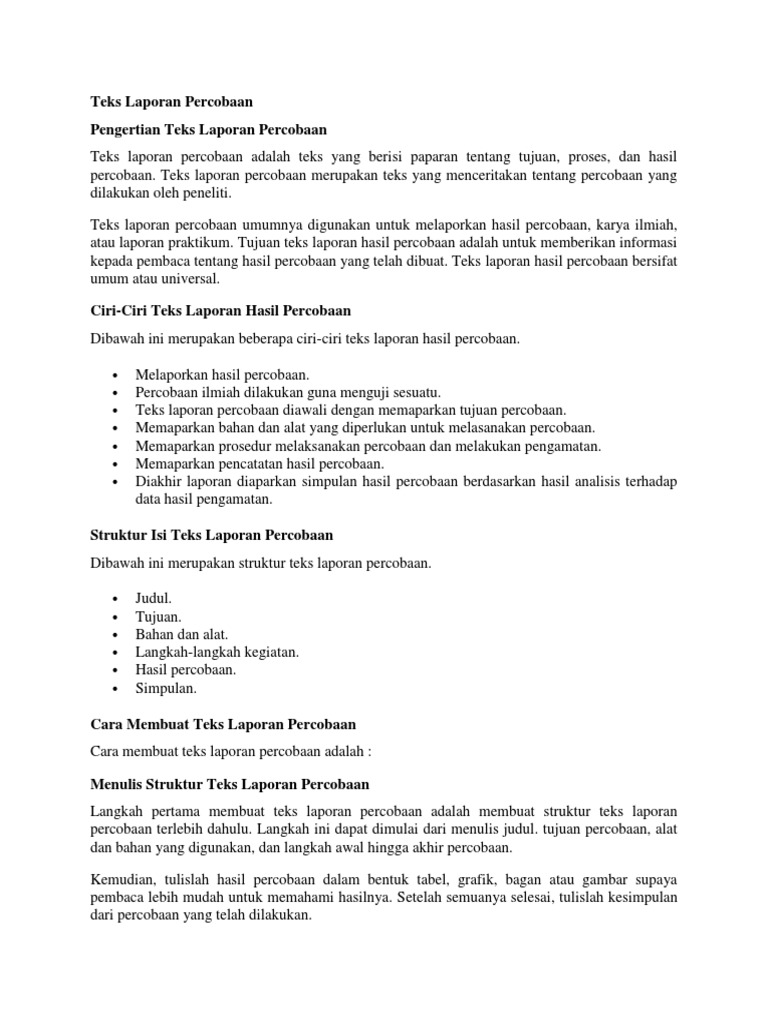 √ Pengertian Teks Laporan Percobaan, Ciri, Struktur, Kaidah, dan …