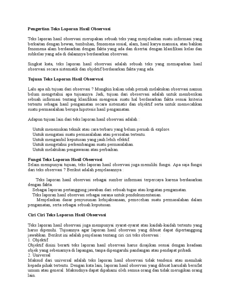 Apa Yang Dimaksud Dengan Teks Laporan Hasil Observasi - Seputar …