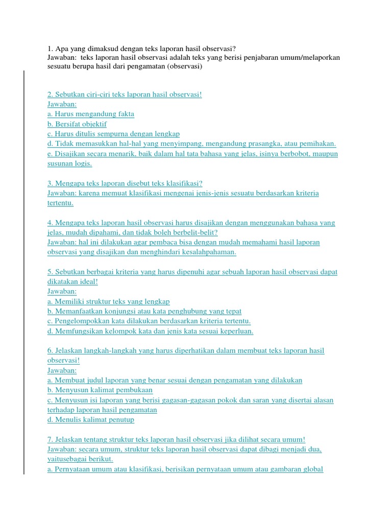 1. Apa yang dimaksud dengan teks laporan hasil observasi? Jawaban …