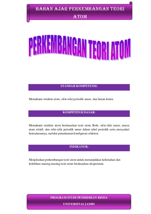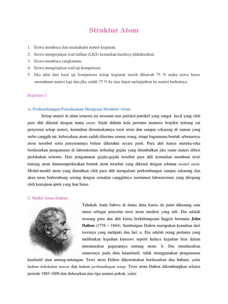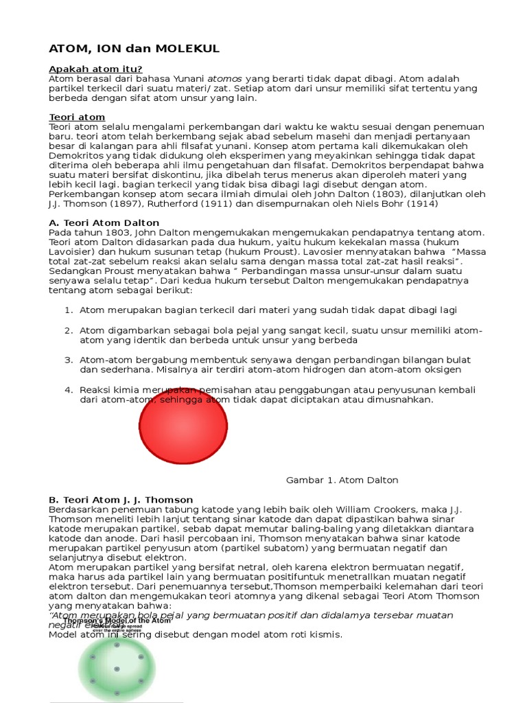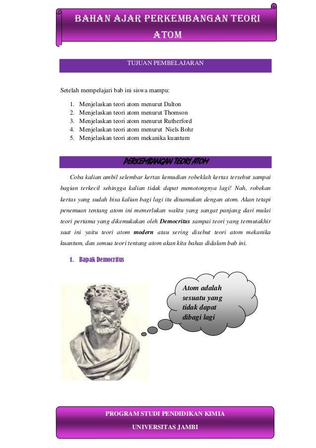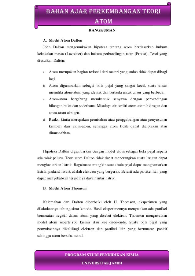 atom yang diusulkan oleh para ahli mengalami per-kembangan …