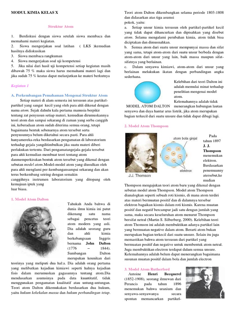 MODUL KIMIA KELAS X Teori atom Dalton dikembangkan selama …