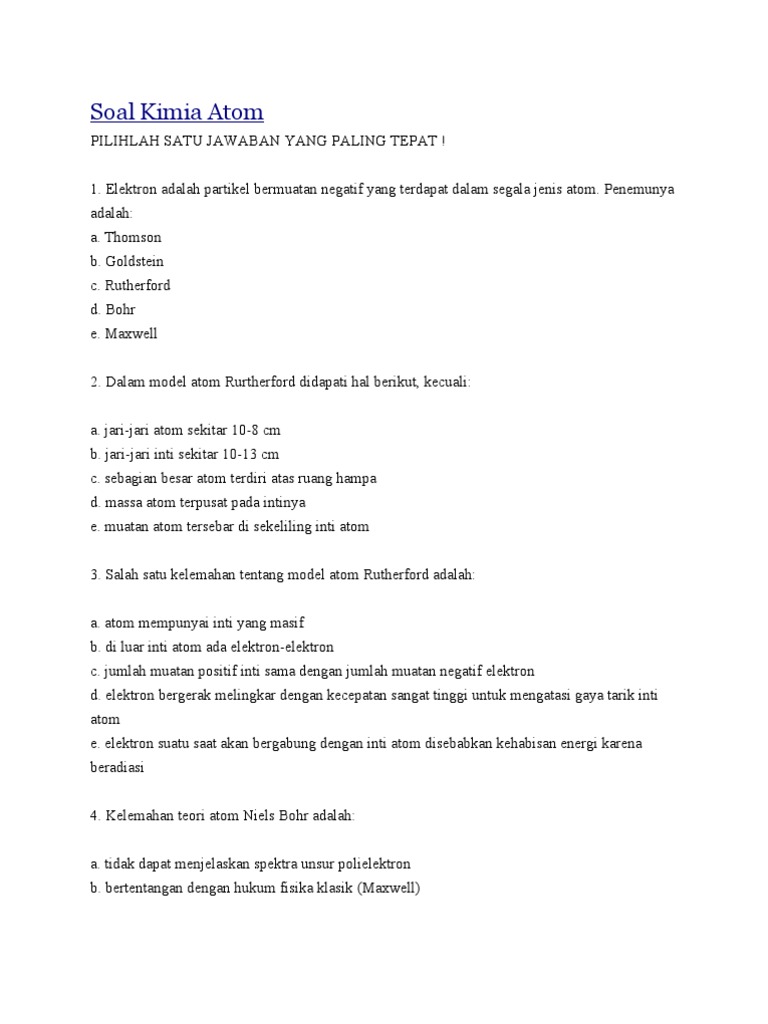 Atom - Pengertian, Teori, Sifat, Struktur, Susunan - Soal dan Jawaban