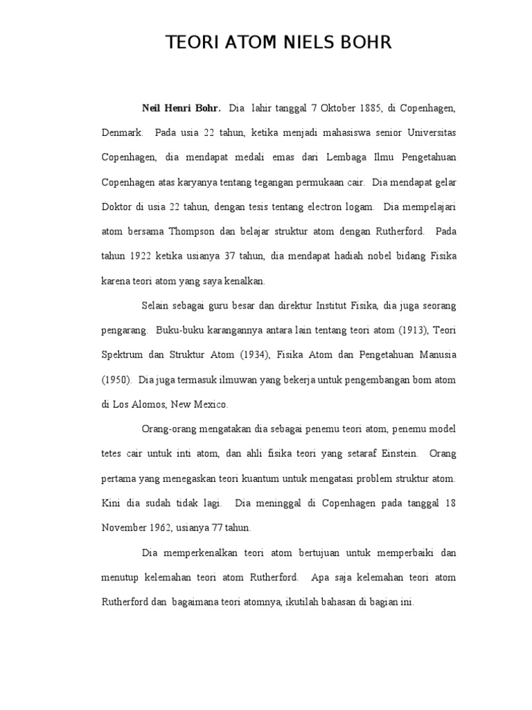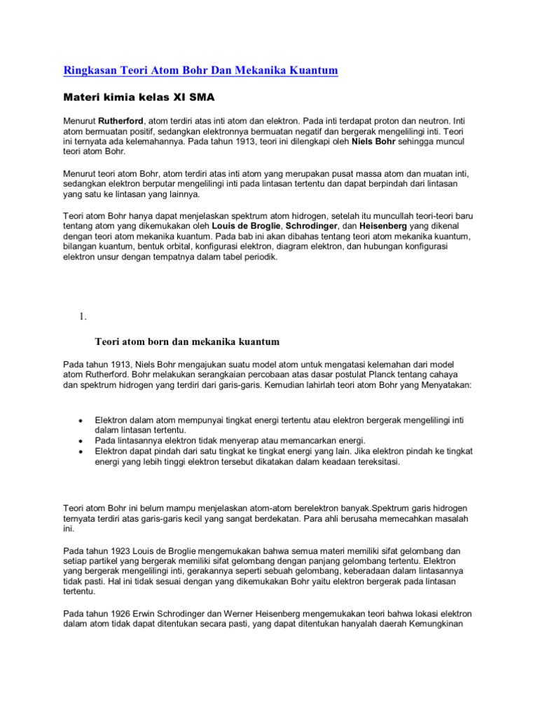 Ringkasan Teori Atom Bohr Dan Mekanika Kuantum