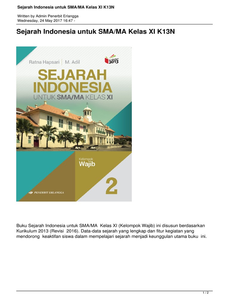 Sejarah Indonesia untuk SMA/MA Kelas XI K13N: Written by Admin Penerbit Erlangga Wednesday, 24 May 2017 16:47