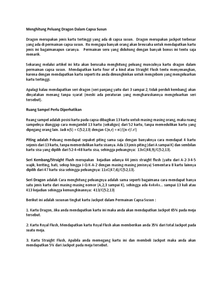 Menghitung Peluang Dragon Dalam Capsa Susun