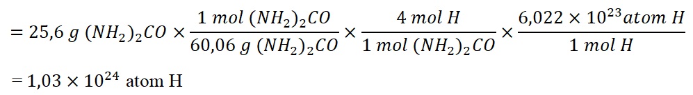 Tentukan jumlah atom dalam : a. 3 molekul urea, (CO(NH2)2 b. 5 …