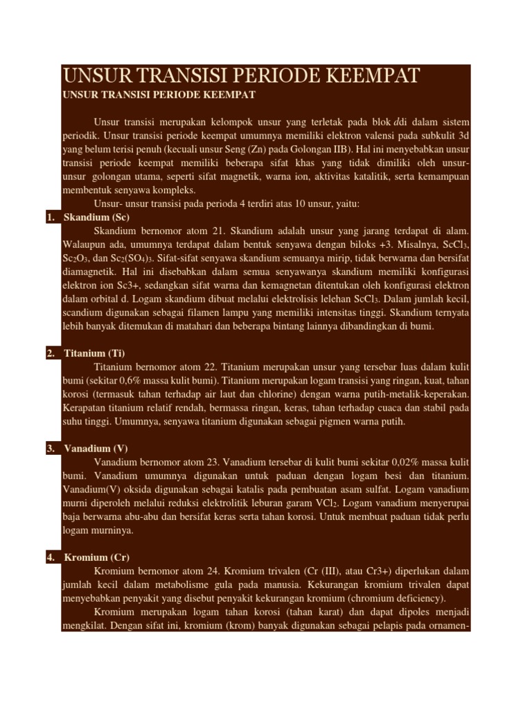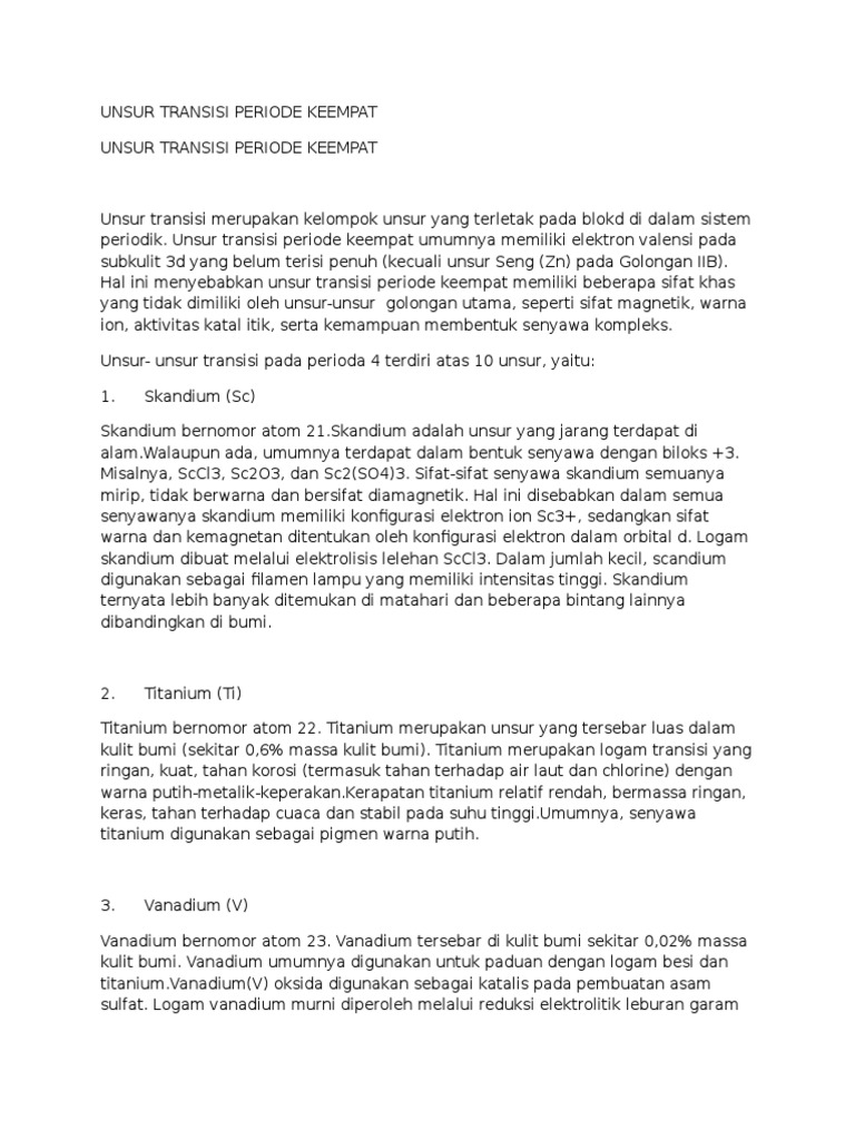 Makalah Unsur - unsur Transisi Periode ke 4 - [DOCX Document]