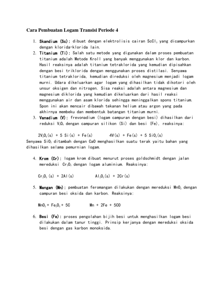 Pembuatan Unsur Transisi Periode Ke 4 - Berbagai Unsur
