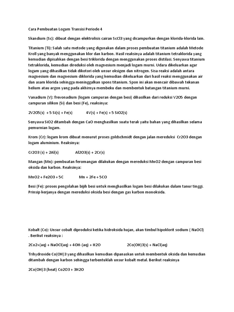Cara Pembuatan Unsur Transisi Periode Keempat - Semut Aspal