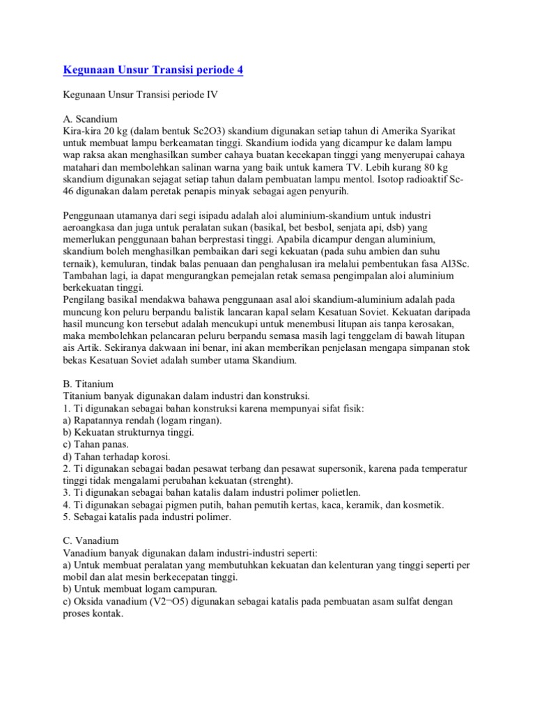 Sifat dan kegunaan Unsur Transisi Periode Ke-3 dan 4 (Kimia …