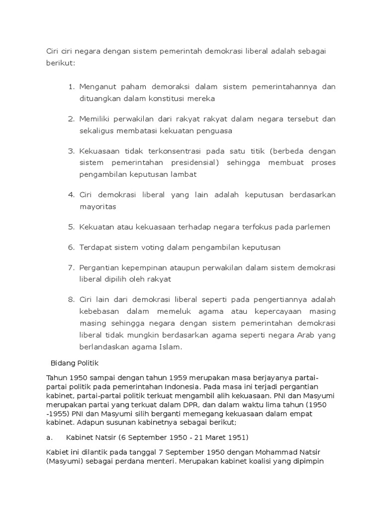 Ciri Ciri Pemerintahan Demokrasi Liberal