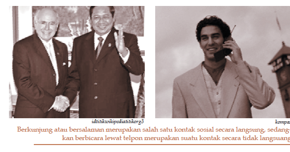 Sebutkan contoh kontak sosial dan komunikasi, masing masing secara …