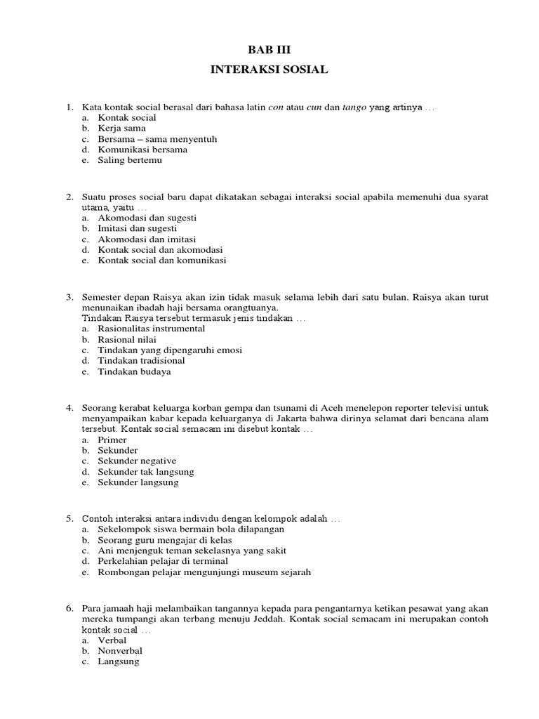Soal dan jawaban interaksi sosial untuk smp (Sosiologi) | Usaha321.net