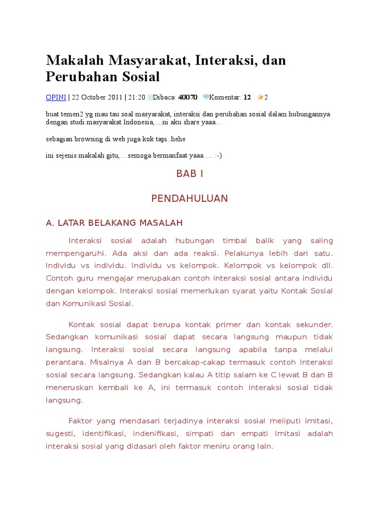 Interaksi, dan Perubahan Sosial