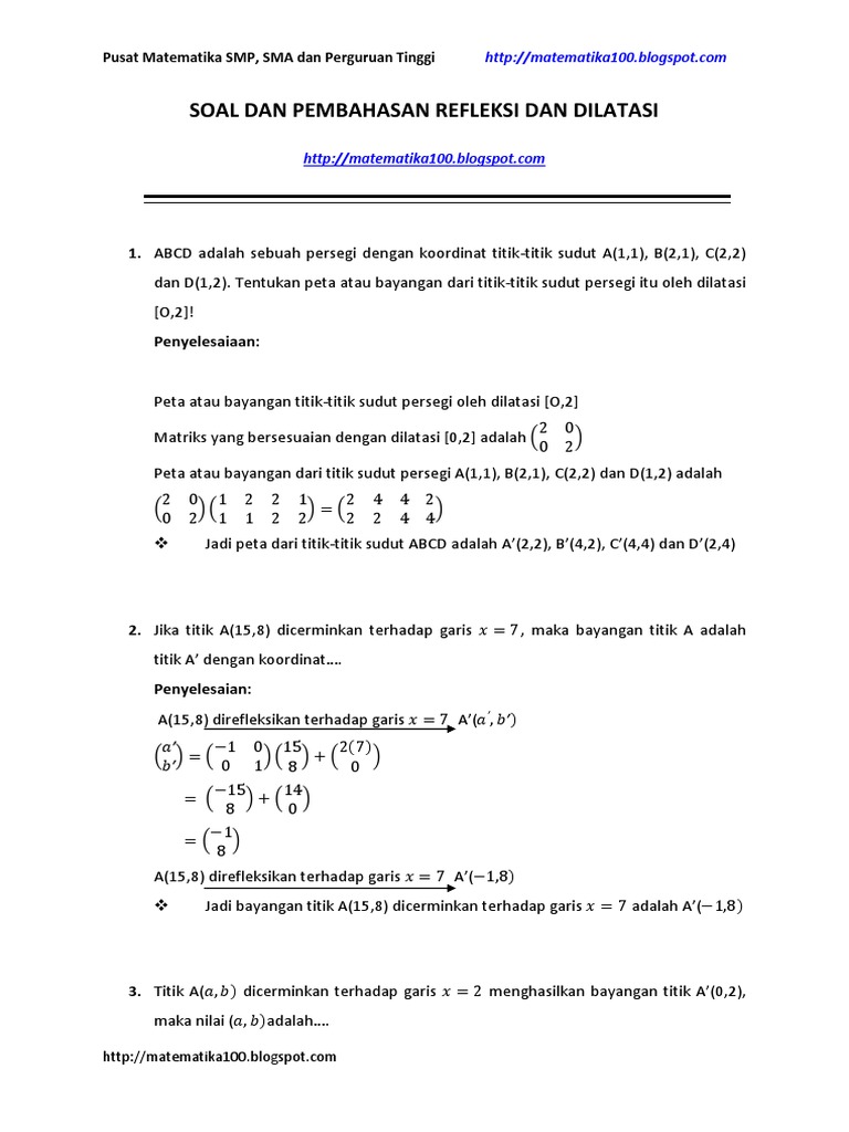 Soal Dan Pembahasan Refleksi Dan Dilatasi _matematika100 …