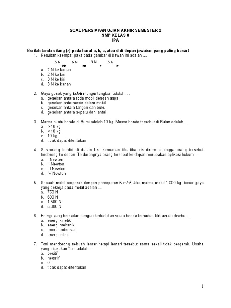 Soal Dan Pembahasan Gaya Smp Kelas 8 – Bah