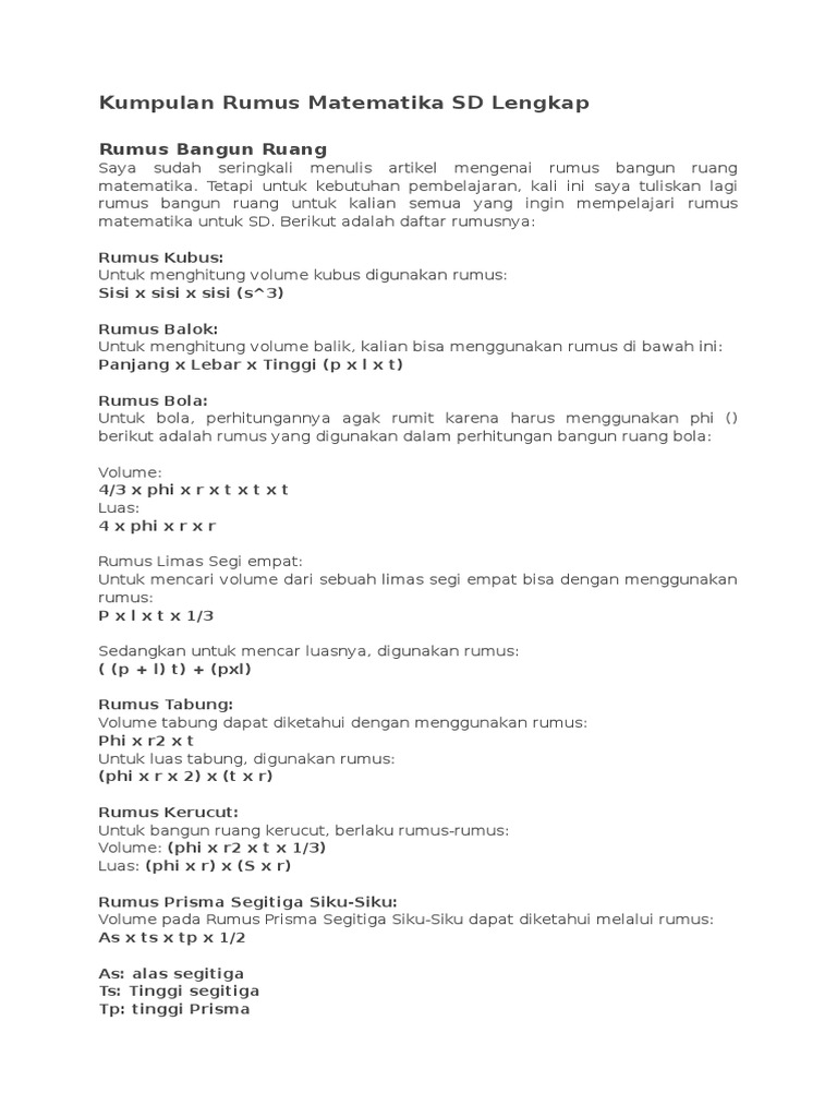 Kumpulan Rumus Matematika Sd Pdf - Rungon h
