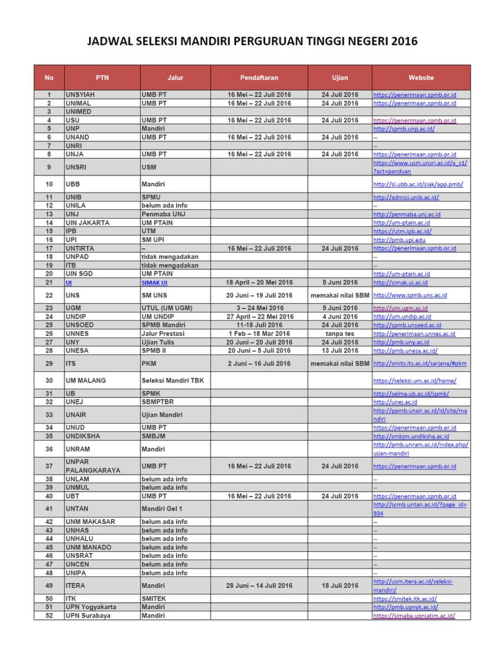 Informasi Jadwal Seleksi Mandiri PTN 2017 Terbaru! | Informasi …