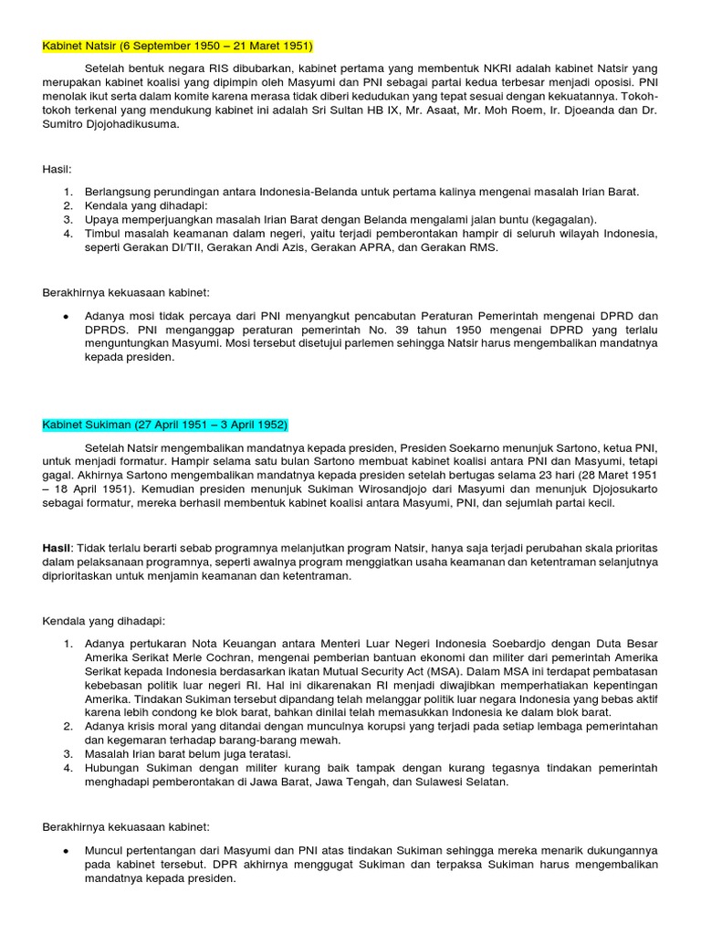 Kabinet Natsir, Sukiman, Wilopo, Ali Sastroamijoyo I & II …