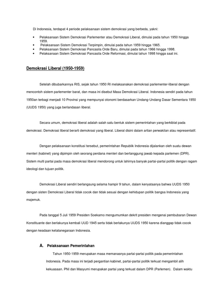 Pelaksanaan Demokrasi Liberal Sesuai Dengan Konstitusi Yang …