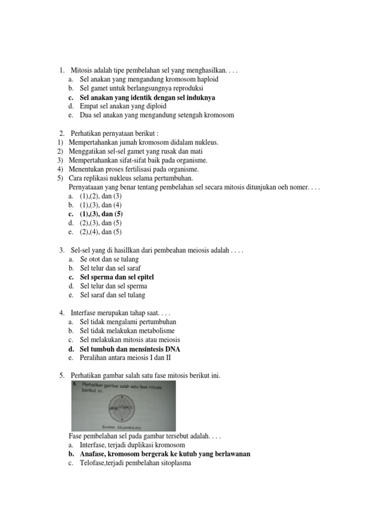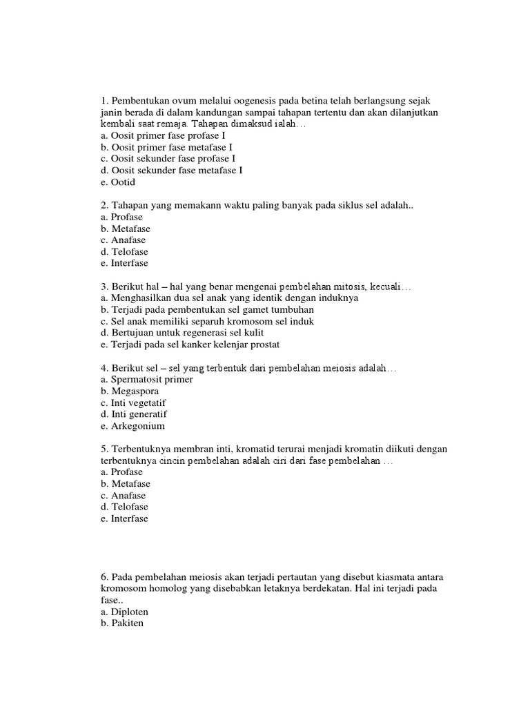 Soal Pembelahan Sel