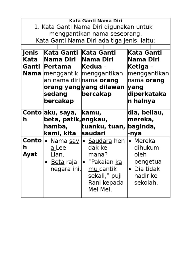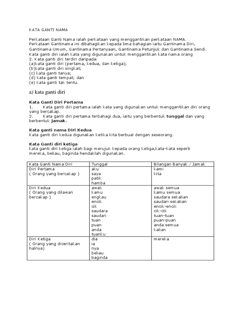 DOC) KATA GANTI NAMA DIRI | Sherone Joe - Academia.edu