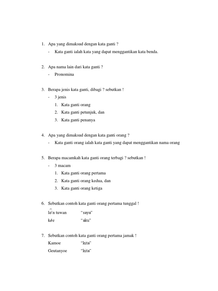 Contoh Kata Ganti Nama Diri | Contoh Soal Dan Materi Pelajaran 7