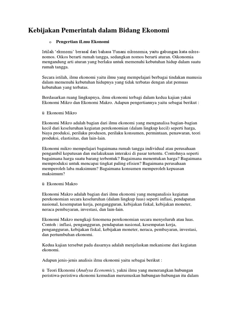 Macam Macam Kebijakan Pemerintah Dalam Bidang Ekonomi - Pustaka …