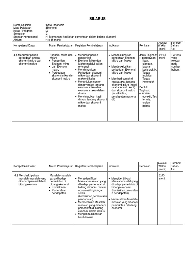 Silabus Rpp Memahami Kebijakan Pemerintah Dalam Bidang Ekonomi