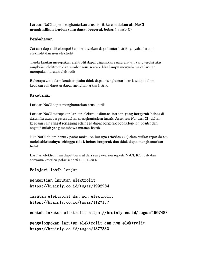 6. Larutan NaCl ternyata dapat menghantarkan aru:listrik. Hal ini terjadi karena ….A NaCl membuat - Brainly.co.id