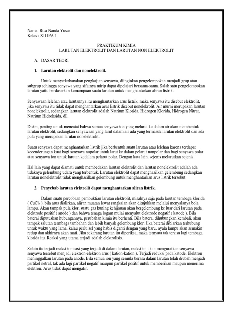 DOC) Praktikum larutan elektrolit dan non elektrolit.docx | Melinda Fauziah - Academia.edu