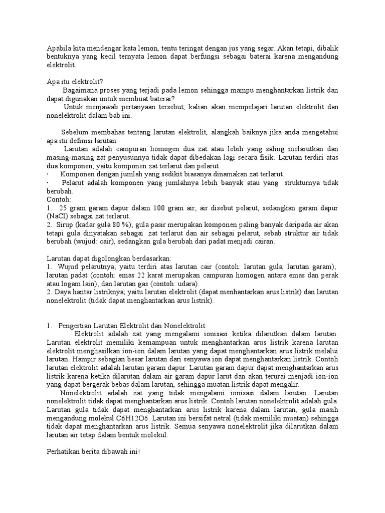 PDF) Penyebab Sifat Hantar Listrik Larutan Elektrolit | Amrudly dly - Academia.edu