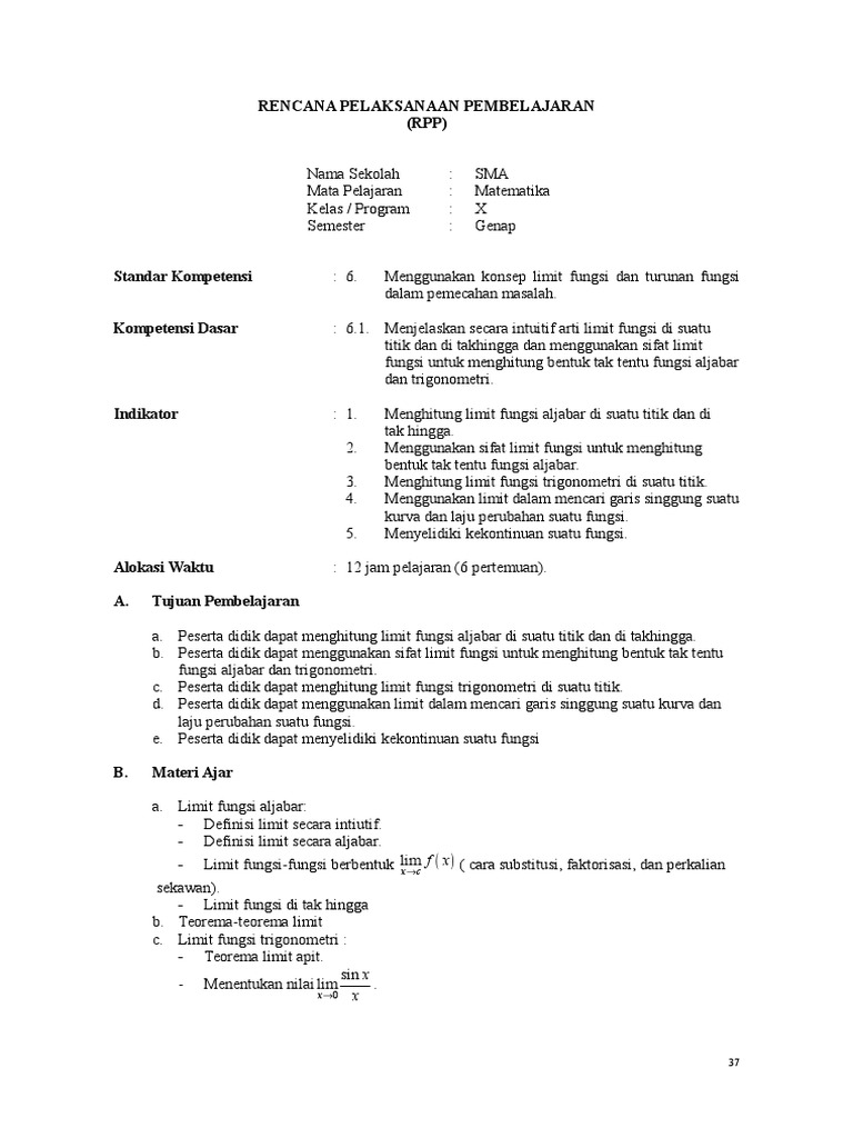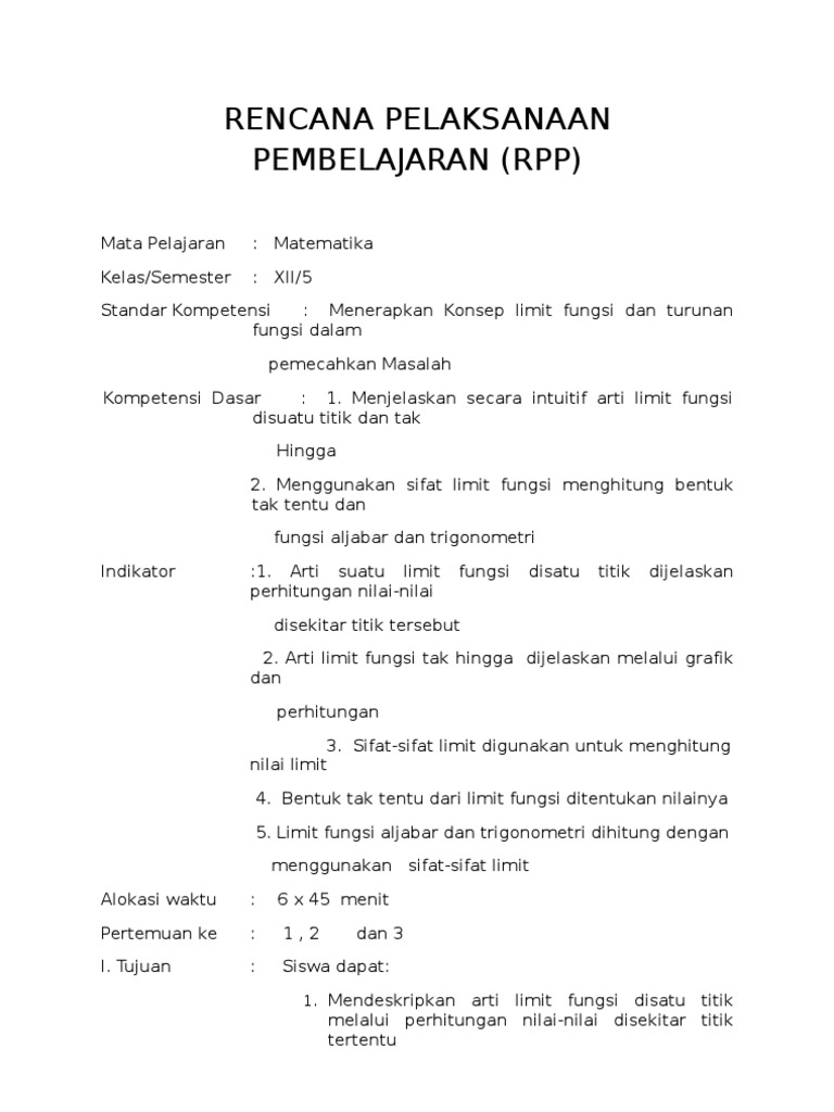 Rpp 1 Fungsi Limit (Kd 3.1 Dan Kd 3.2)
