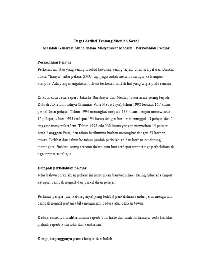Tugas Artikel Tentang Masalah Sosial