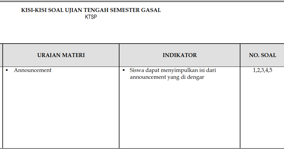 Kisi Kisi UTS B. Inggris Kelas 8 Semester 1/ Ganjil - soalbagus.com