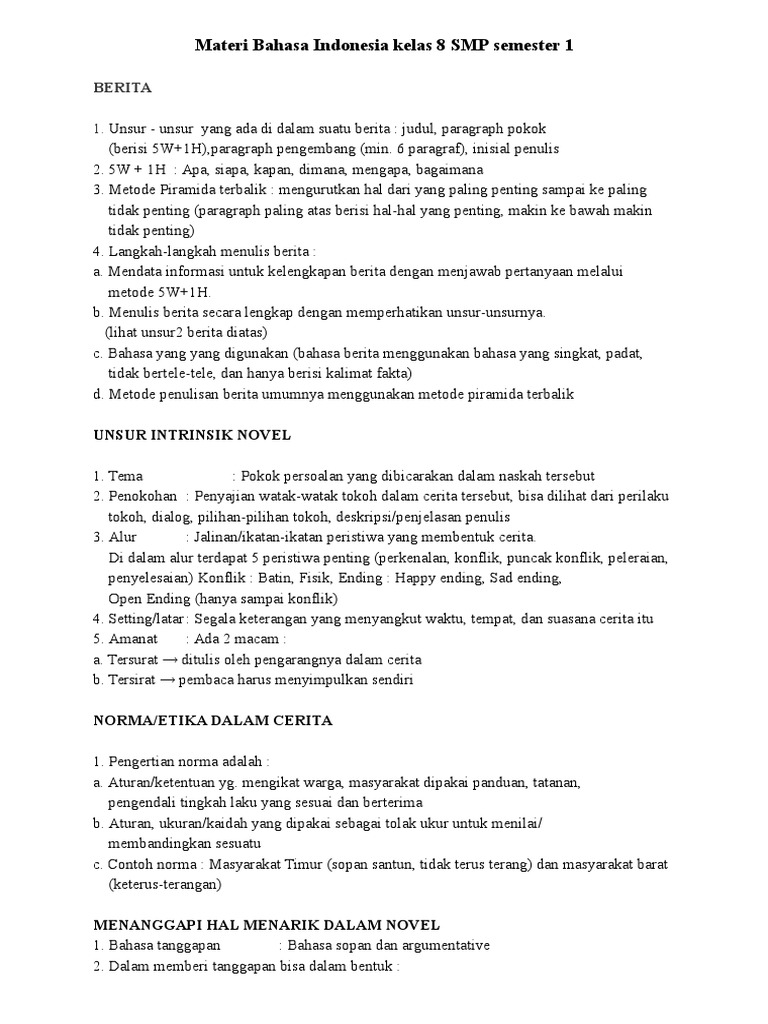 Materi Bahasa Indonesia Kelas 8