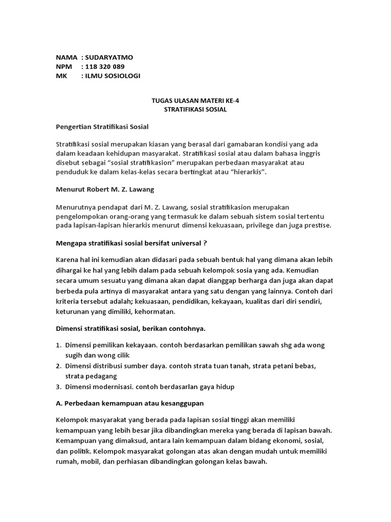 Jelaskan pengertian Stratifikasi Sosial? - Brainly.co.id