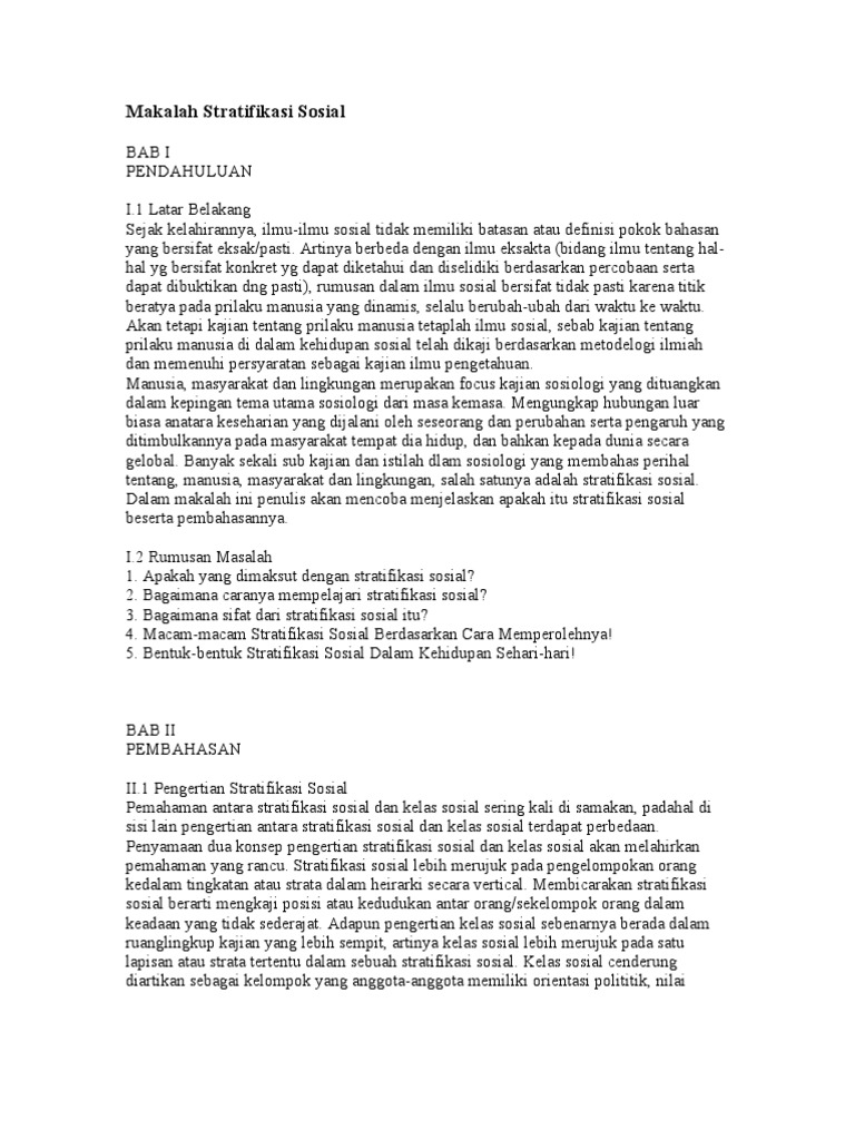 Makalah Stratifikasi Sosial