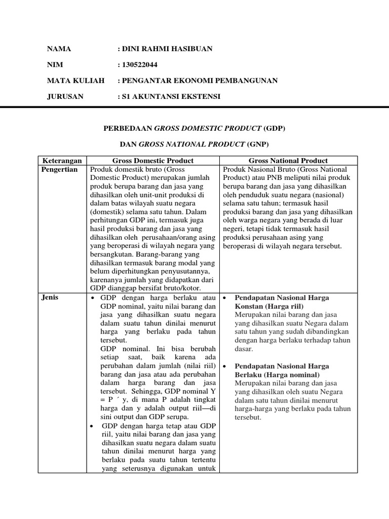 Tugas Perbedaan Gnp Dan Gdp