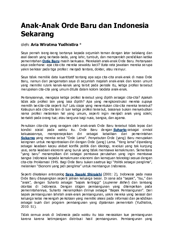 PDF) Anak-Anak Orde Baru dan Indonesia Sekarang | Aria Wiratma - Academia.edu