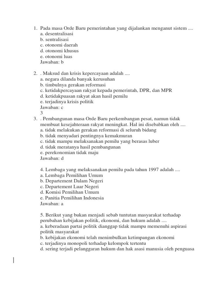 Contoh Soal Bab Perkembangan Masyarakat Indonesia Pada Masa Orde Baru