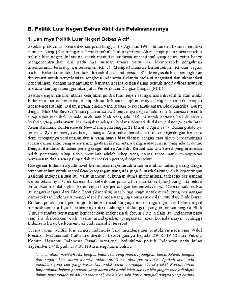 B. Politik Luar Negeri Bebas Aktif Dan Pelaksanaannya