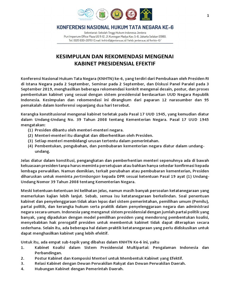 Kesimpulan Dan Rekomendasi Mengenai Kabinet Presidensial Efektif