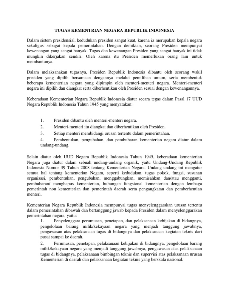 Kedudukan dan Fungsi Kementerian Negara Republik Indonesia dan …